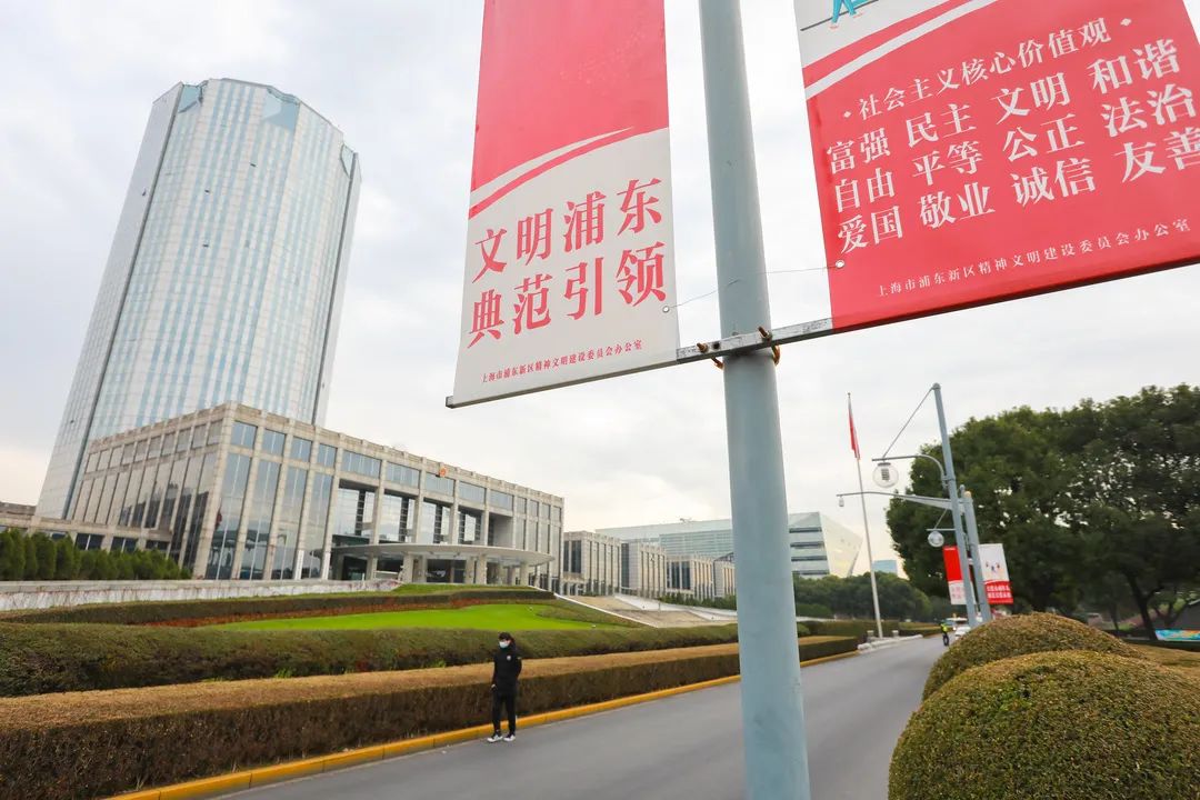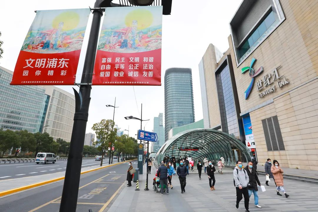 “同创全国文明城区,共建浦东美好家园”“垃圾分一分,环境美十分”“饮食有节,科学膳食健康为先”……在小陆家嘴环形天桥上眺望四周,随处可见文明城市创建的相关宣传。目前,浦东正在向创建全国文明典范城区的目标努力前行,区域内营造了浓厚的宣传氛围,也成为冬日里一道美丽、温暖的风景。
