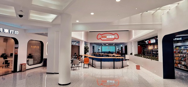 图为学校与京东集团成立京东产业学院,图为京东校园馆内部设施