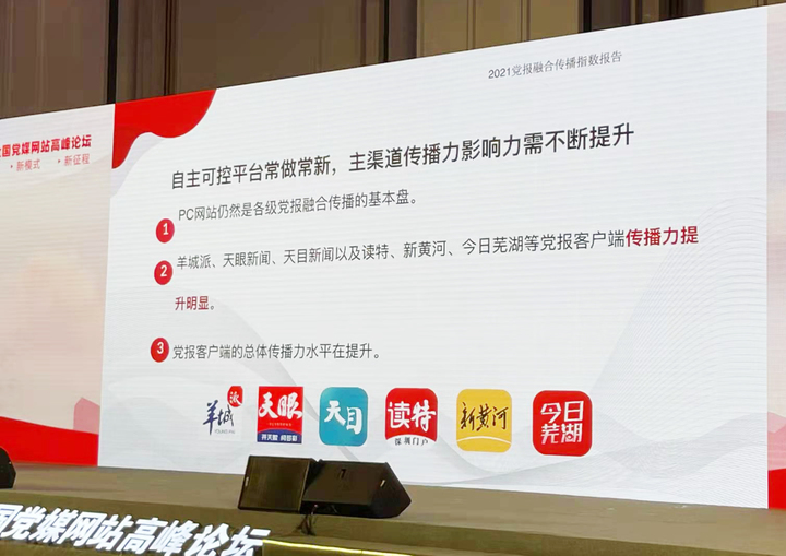 不仅如此,在媒体融合的大趋势下,渠道建设是提升党报融合传播力的必由路径。报告中的一组数据显示,今年以来,党报网站的开通率最高,PC网站仍然是各级党报融合传播的基本盘。其中,新黄河客户端再次被“点名”。《报告》特别提到,今年以来,新黄河客户端、读特、羊城派、天眼新闻等党报客户端传播力提升明显,充分体现了党报客户端的总体传播力水平不断提升。