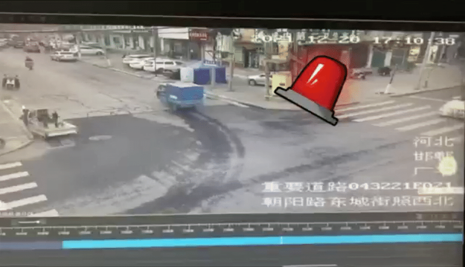 2021年12月20日17时许,在广平县辖区朝阳路与东城街交叉口处,发生一起交通事故,如视频中所示,白色小轿车在由北向南行驶至路口中央时,一辆电动三轮车由东向西快速驶入路口,遂即撞上白色小轿车,所幸均无人员受伤。