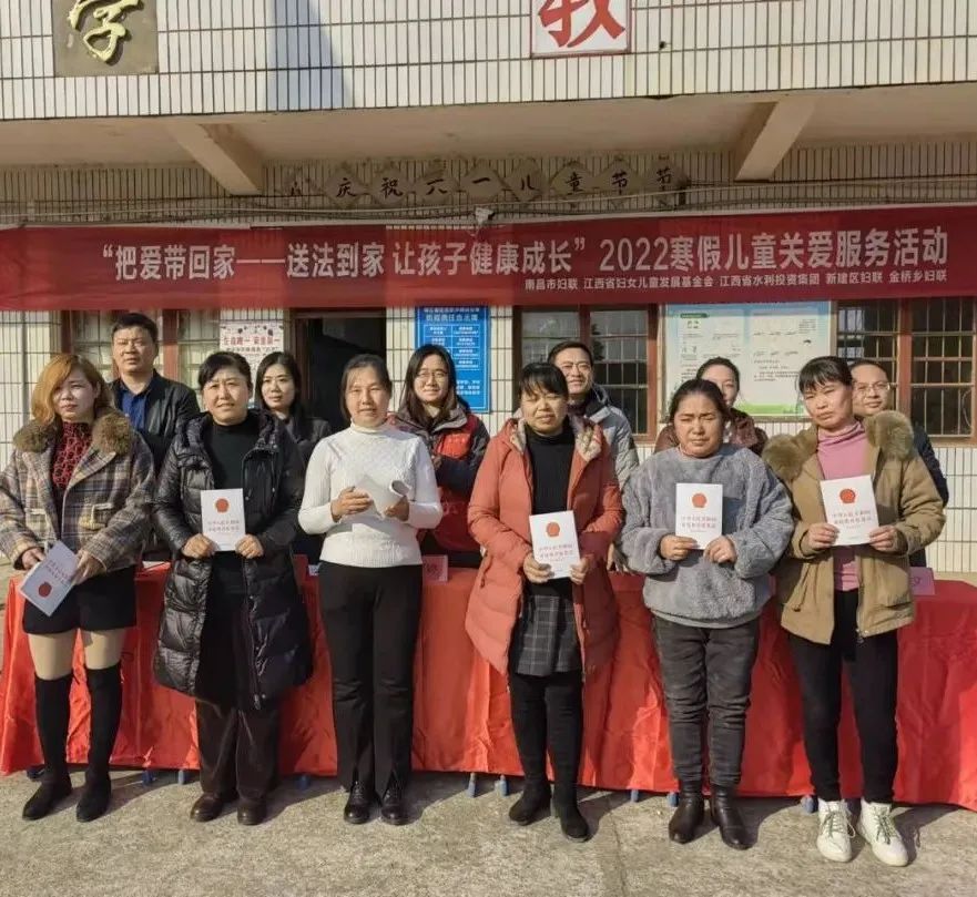 为认真落实全国妇联、省妇联等12个部门关于开展“把爱带回家—送法到家 让孩子健康成长”2022年寒假儿童关爱服务活动的部署要求,推动《家庭教育促进法》的实施,12月30日下午,南昌市妇联、江西省妇女儿童发展基金会联合江西省水利投资集团有限公司开展“把爱带回家—送法到家 让孩子健康成长”关爱服务活动。
