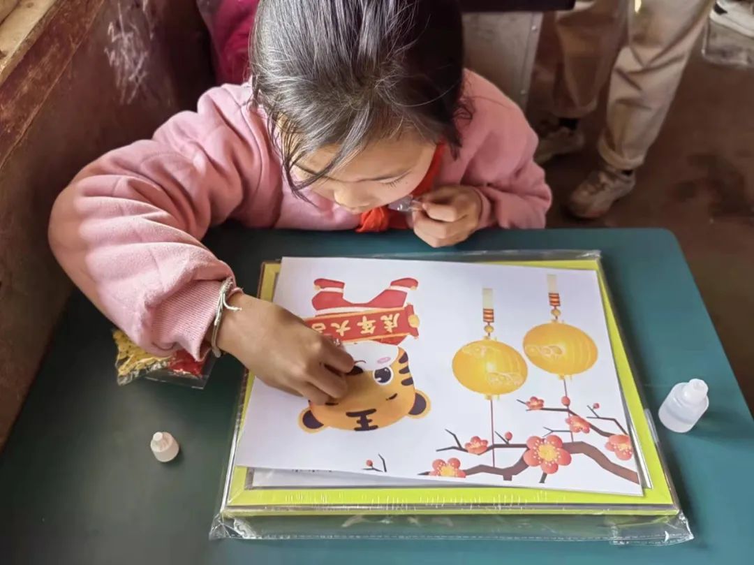 为1-3年级小朋友开设纽扣画手工课程《虎虎生威》,孩子们与刘老师共同完成手工制作,亲手制作的纽扣画也是孩子们送给自己的新春礼物。