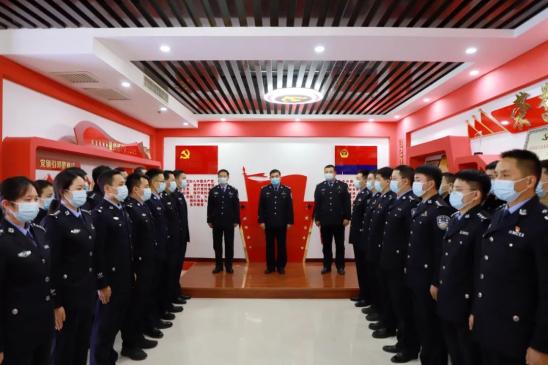 “我宣誓:自愿加入疫情防控党员先锋突击队,疫情不退,警察不退……坚决打赢疫情防控阻击战。”巡特警大队党员辅警董鑫面对党旗庄严宣誓,主动请愿加入疫情防控党员先锋突击队。