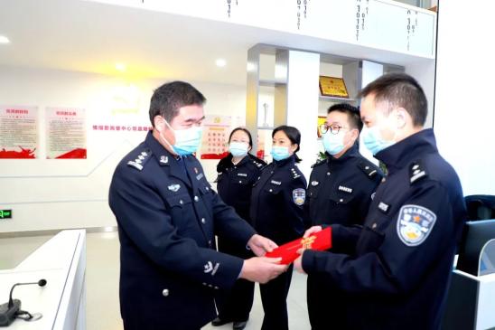 “全县公安机关及广大民辅警坚持‘人民至上、生命至上’,义无反顾战斗在疫情防控第一线,狠抓‘防风险、战疫情、保安全、护稳定’各项措施落实,用人民警察血肉之躯筑起疫情防控铜墙铁壁,全力维护了人民群众身体健康和生命安全,确保了全县社会治安大局持续稳定。为表彰先进,鼓舞士气,县局决定给予紫阳县公安局巡特警大队通令嘉奖”。12月27日晚20时,紫阳县公安局开展疫情防控“建功在岗位、送奖到一线”表彰奖励活动,副县长谭简、政委熊磊带领班子成员在局机关“双品培验中心”举行“授星授牌仪式”,并分别深入城关、麻柳、蒿坪、毛坝、权河等疫情防控查验点一线宣读《嘉奖令》《表彰奖励决定》,授予1个集体为疫情防控工作先进集体,授予1名党员民警、5名党员辅警为疫情防控工作先进个人,第一时间把局党委的关爱和温暖传递到疫情防控一线和广大民辅警的“心坎上”,进一步激发广大民辅警做好疫情防控工作的内生动力。
