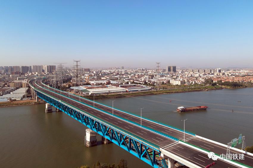 中铁十二局集团承担南沙港铁路4标全长约18.8公里施工任务,主要结构物为特大桥3座,大中桥1座,框架中桥2座,涵洞4座,站场2座等。其中,南沙港铁路跨鸡鸦水道主桥公铁两用连续钢桁梁桥,主桥长381米,主跨175米,是国内同类型最大跨度公铁两用平行弦连续钢桁梁,也是国内首座纵肋倒置钢——混凝土组合结构公铁两用桥,更是国内首例既有公路桥梁改扩建公铁两用桥梁工程。建设者通过开展科研攻关,在既有公路桥改扩建公铁两用桥施工领域进行了探索和创新,为既有桥墩再利用、公铁两用钢桁梁桥混凝土公路桥面板施工等同类工程提供了较为成熟的借鉴经验。