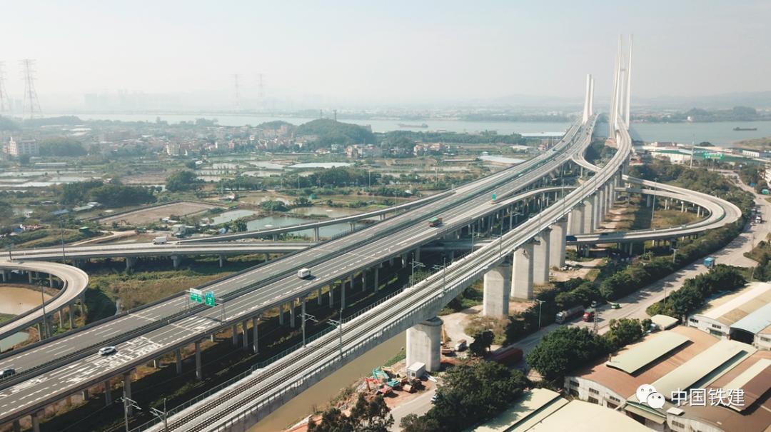 中铁十一局集团参建的广州南沙港铁路标段全长15.8公里,其中跨西江斜拉桥主跨跨径600米,是目前世界上双线货运铁路建设史上同类型结构跨度最大的斜拉桥。该大桥全长1117.5米,属钢箱混合双主梁结构,采用H型桥塔。大桥建设过程中,建设者克服深水急流和地质复杂等不利因素,先后攻克钢围堰、大直径桩基、大体积混凝土浇筑等一系列施工难题。建设者还运用BIM技术优化预应力筋、索导管、锯齿块和梁等部位钢筋之间的碰撞冲突,并制作可视化交底,保障各工序有效衔接。
