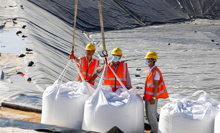 “焚烧发电厂按计划从飞灰暂存库转运经过螯合稳定化且化验合格的飞灰,会经过汽车衡进行称重计量、卸车压实、HDPE膜覆盖等程序,最终填埋进填埋场。”光大环保能源(三亚)有限公司总经理助理刘照辉说,“目前填埋场处理能力能够满足现有焚烧发电规模与新扩建项目运营期内的飞灰处置需求。”