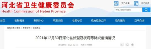 2021年12月30日0—24时,河北省无新增新型冠状病毒肺炎确诊病例,无新增无症状感染者。