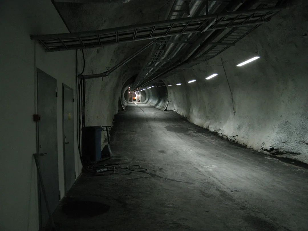 斯瓦尔巴全球种子库的入口隧道,隧道尽头是大门,左边是“办公室”部分。| NordGen Johan Bäckman / Wikimedia Commons