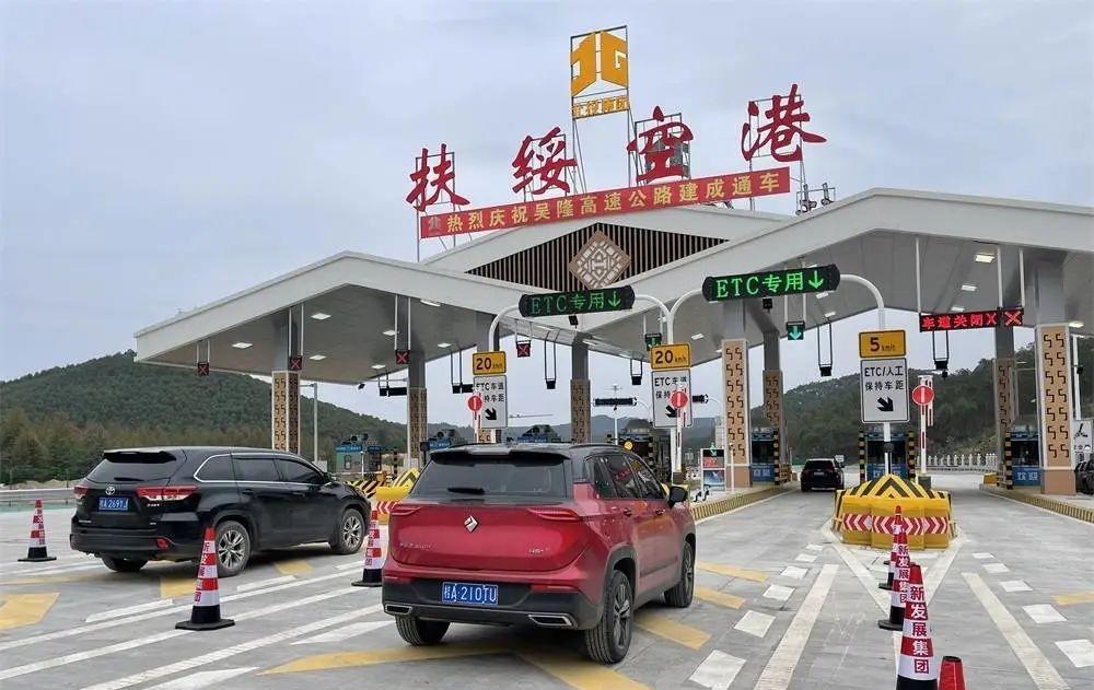 ▲12月30日,吴隆高速公路建成通车,图为使用ETC的小客车通过收费站。南国早报记者 李艺摄