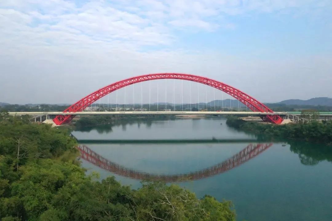 ▲吴隆高速公路沿途景色,沙尾左江特大桥——目前世界最大跨径公路钢管混凝土提篮拱桥。图源:广西新发展交通集团