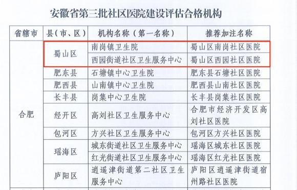 原标题:《喜报!蜀山两家社区医院获评省级社区医院》