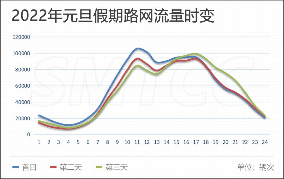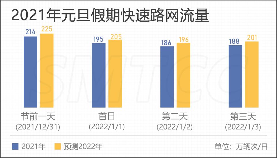 预计2022年元旦假期路网总体流量达603万辆次,日均流量约201万辆次,同比上升3.1%,与节前双休日流量相比上升5个百分点。