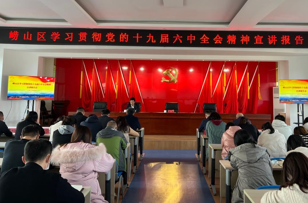 崂山区学习贯彻党的十九届六中全会精神宣讲报告会在沙子口街道办事处及相关社区举行。