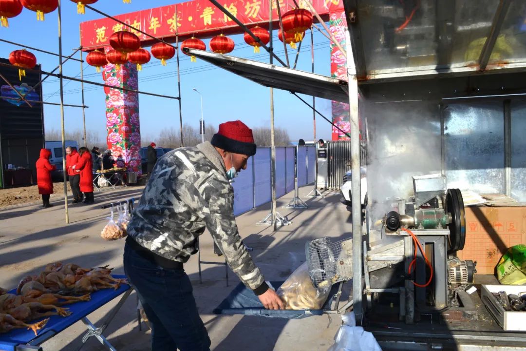 “冰糖、白糖、红糖、大豆、瓜子儿……”还没走到集市中心,就已经听到一些摊主循环播放着商品的“广告词”,好吃的、好看的、好玩的应有尽有,琳琅满目的商品无不透着节日的喜庆。“这榛子怎么卖啊?”“13块钱一斤,来点尝尝不。”“给我来点,再来几串糖葫芦。”叫卖声、吆喝声、讨价声各种声音交杂在一起形成独特的“乡村交响曲”。