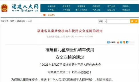 《福建省儿童乘坐机动车使用安全座椅的规定》