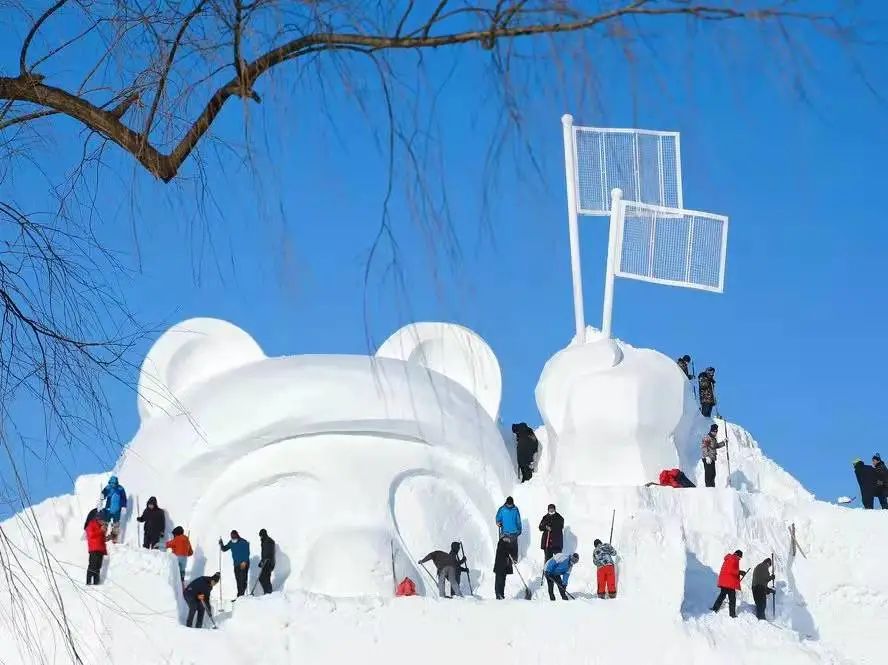 第34届太阳岛雪博会大型主塑《冬奥·太阳岛之旅》长100米,高30米,用雪量达2.7万立方米,其中的雪雕卡通形象以冬奥吉祥物为创作原型,是目前太阳岛雪博会有史以来最大的卡通单体雪塑,同时也是世界上最大的卡通单体雪雕。