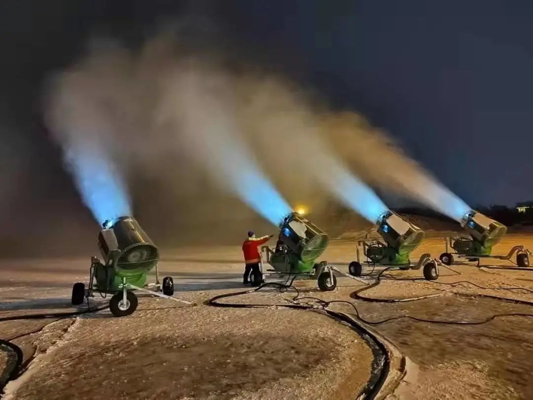 其实,为了保证雪雕按时完成,每到雪博会规划设计结束、即将制作之前,太阳岛上便会出现这样一种场面——十几台制雪机隆隆作响,全部开启运转模式,昼夜进行人工制雪。