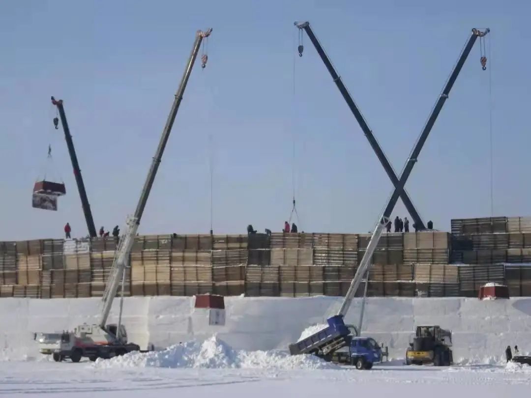 像大型主塑,是如何从雪坯完成雕刻的?完成了雪坯堆砌工作,就要进行切割雕刻了。雪雕师傅们先用斧子和铲子为雪雕打出轮廓,在此基础上进行细节上的雕琢。当整个雕刻工作完成,雪雕师傅们会进行最后的修整,将雪雕上堆积的雪屑及时清理,最后将余下的木制框架一并拆除。一个完整的雪雕作品就呈现在眼前了。