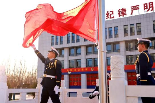 晨曦相伴,共赴新程。伴随着2022年第一缕阳光,山东各地消防救援队伍举行新年第一场升国旗仪式,护旗方队步伐铿锵,雄壮的国歌响彻耳旁......