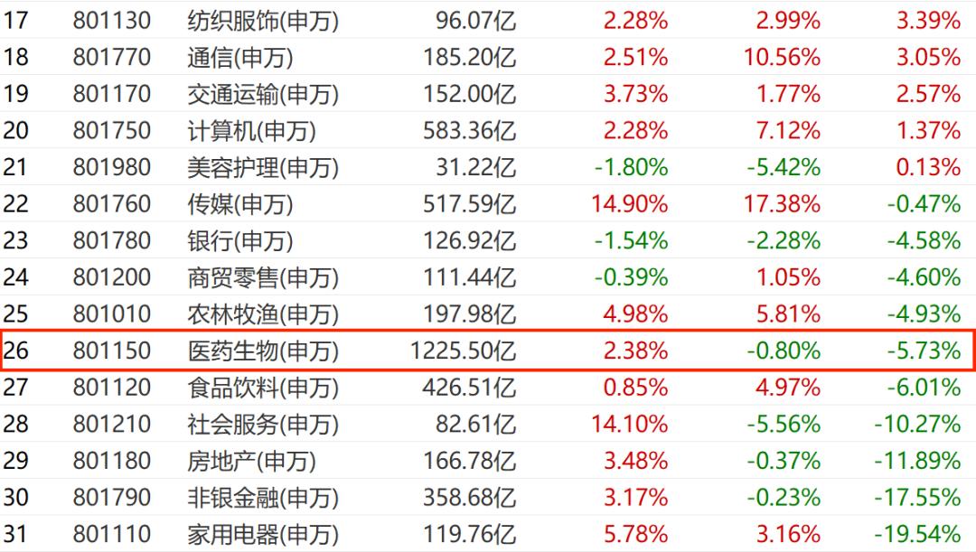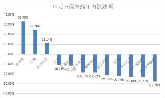 统计显示,截至2021年12月31日,申万医药生物指数在2021年累计下跌5.73%,涨幅在申万31个一级行业中排名第26位,为过去3年最差。