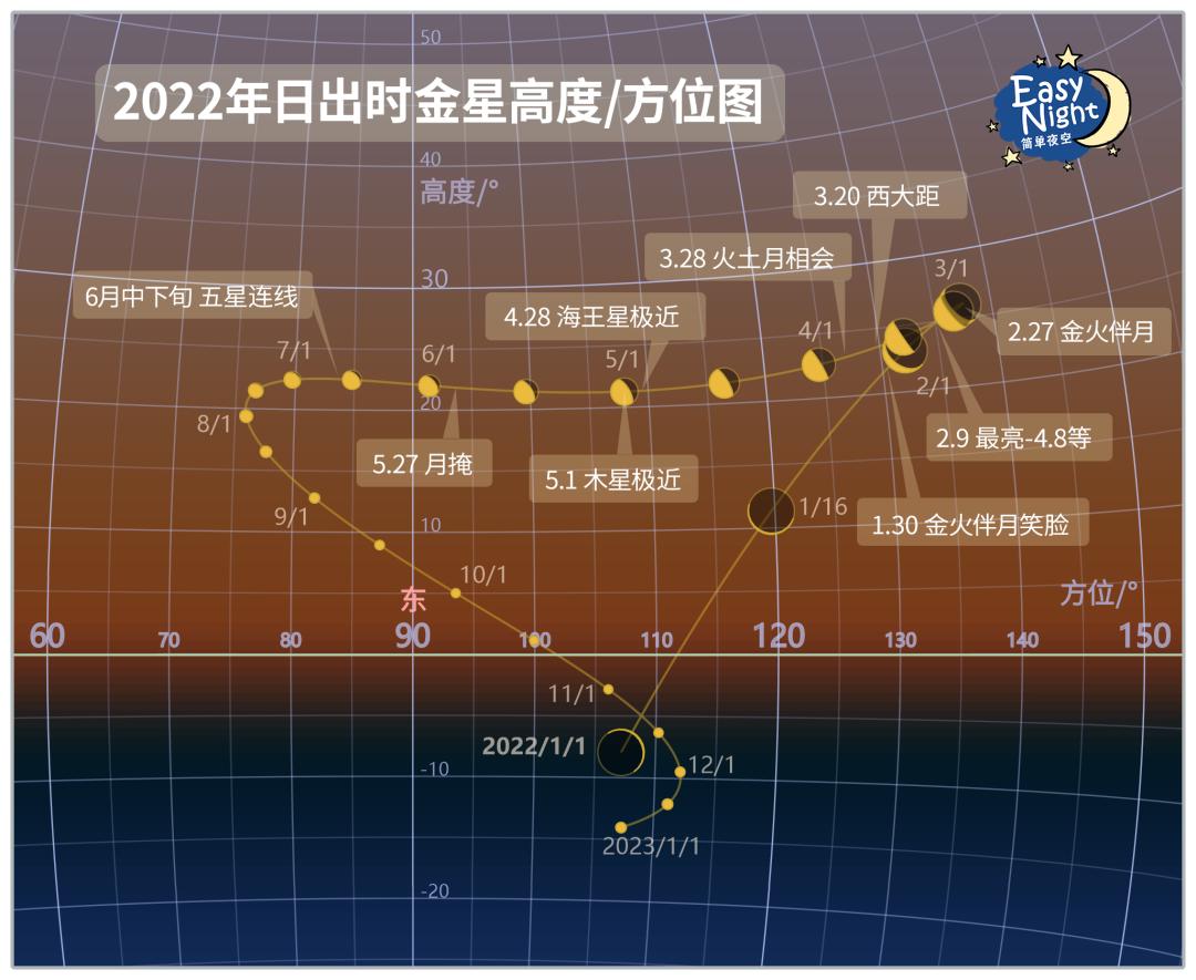 2022年日出时金星方位图,以北纬40度的北京为例 | EasyNight