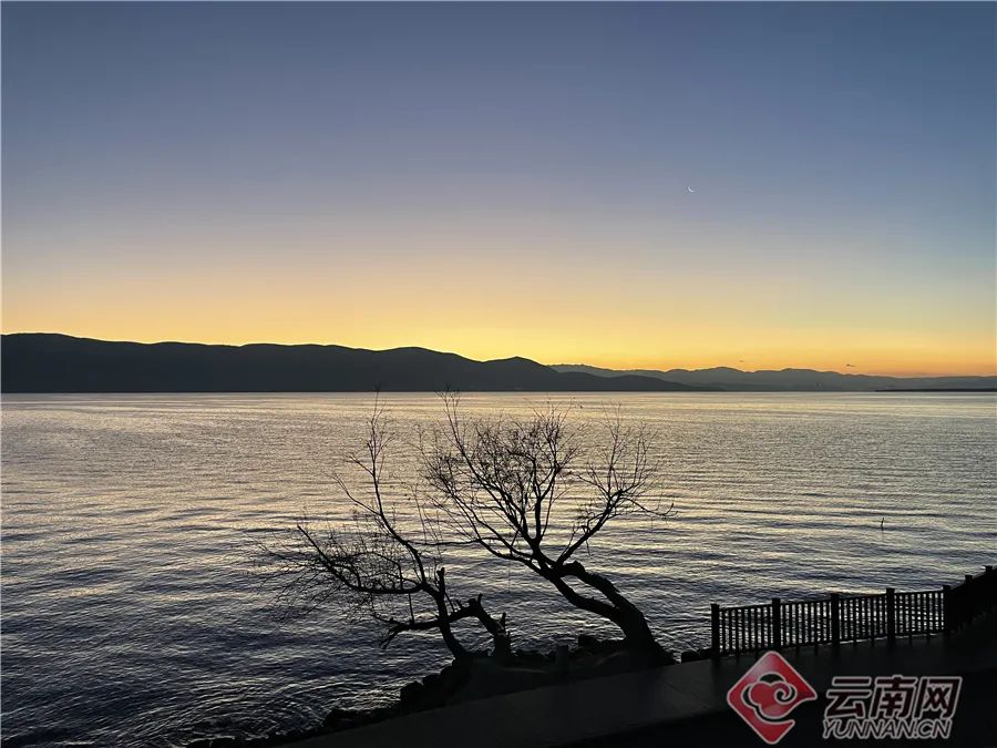 阳光照耀下,洱海波光粼粼,沙鸥翔集、锦鳞游泳,新年气象万千。让人不禁感慨:当第一缕阳光喷薄而出,美好生活的轮廓就已经镶上了“金边”。
