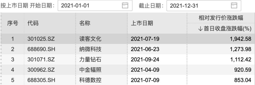 2021年打新市场,有人中签如中奖:读客文化1天暴涨19倍、极米科技1签赚近20万、楚天龙上市以来录得16个一字板。