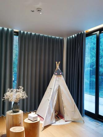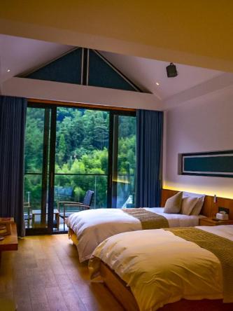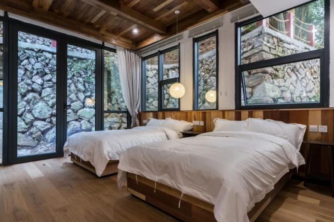 入夜,住进大峨村民宿——溪山村舍,这里背枕青山,门临潺潺流动的小溪,有纯天然的露天游泳场所,目之所及皆是翠林竹海。