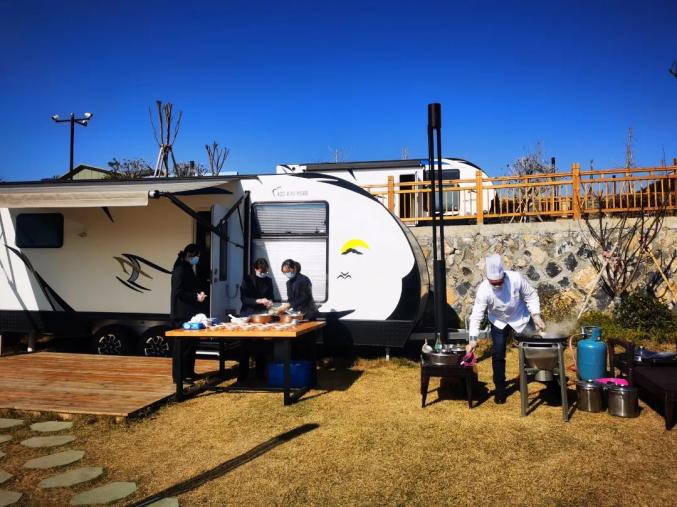 在霞关品尝海鲜大餐后,前往韭菜园房车露营基地入住,在大海星辰的美景下唱歌、烧烤、聊天、畅饮……