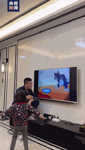 爸爸与动画片“神配合”