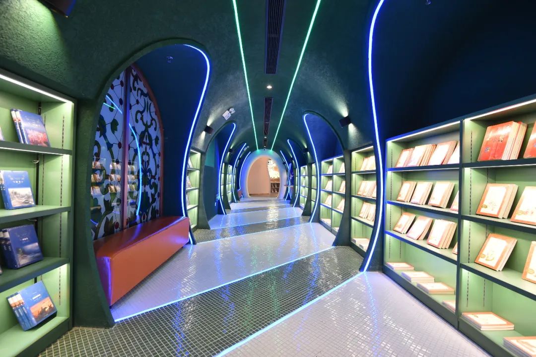 这条长廊上放置了中国各大名著以及世界名著,让你可以穿越时空跟国内外名作家们进行一场心灵对话。(李东 摄)