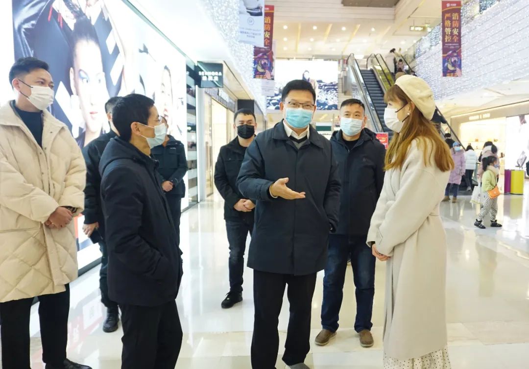 ▲1月1日,区委副书记、区长杨森在之心城购物中心督查疫情防控和安全生产工作。