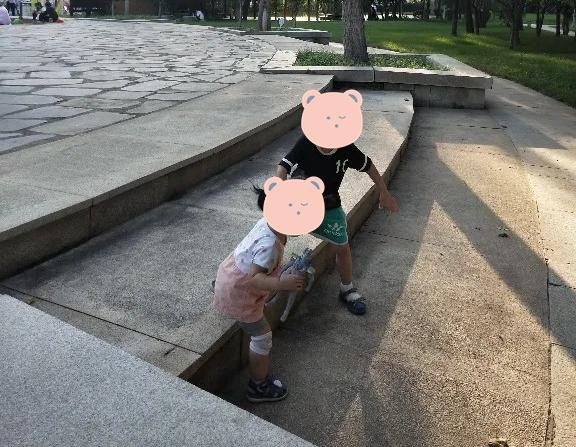 大宝最近越来越有哥哥的样子了。去公园,要自己抱妹妹上马路牙子。妹妹走花池边,就旁边跟着走,手臂张开做保护状。妹妹下台阶有点害怕,就拉着妹妹手,身体前倾保护着妹妹,担心她摔倒。哥哥暖起来是真的暖。