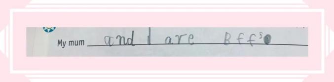 今日翻看娃作业发现造句写了我和妈妈是BFF(Best Friend Forever)!哇简直不要太温馨!感恩有你陪伴左右,虽然友谊小船有时候说翻就翻,真的互虐千百遍,爱彼此如初恋啊!
