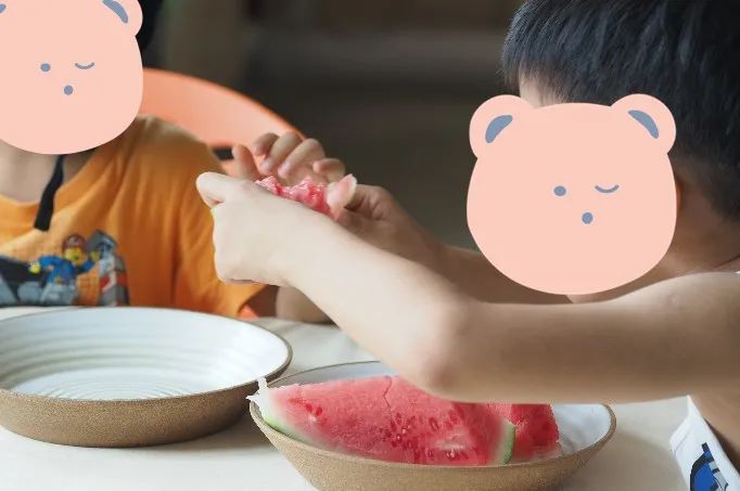 睡前喝牛奶吃橘子,我把剥好的橘子递给弟弟,弟弟转头给姐姐,说最大的给姐姐。