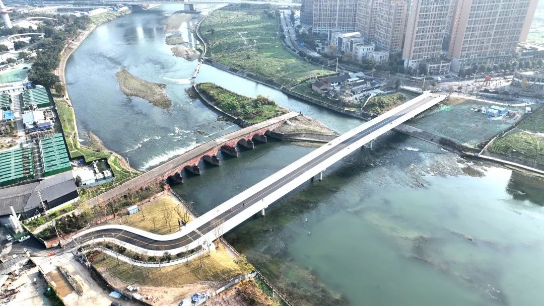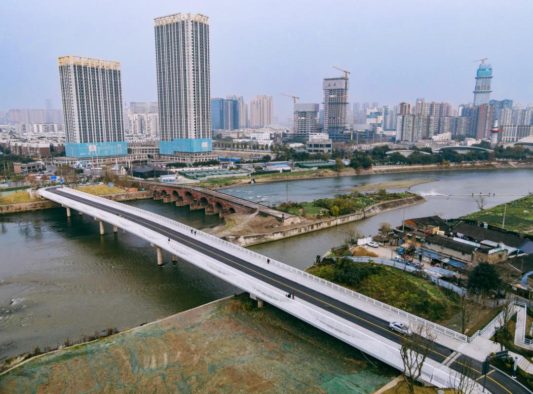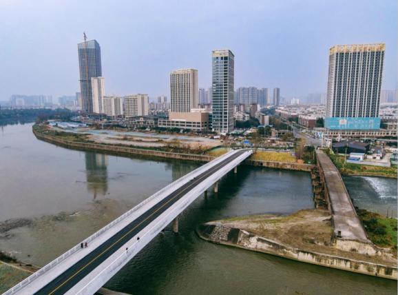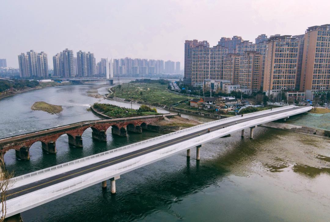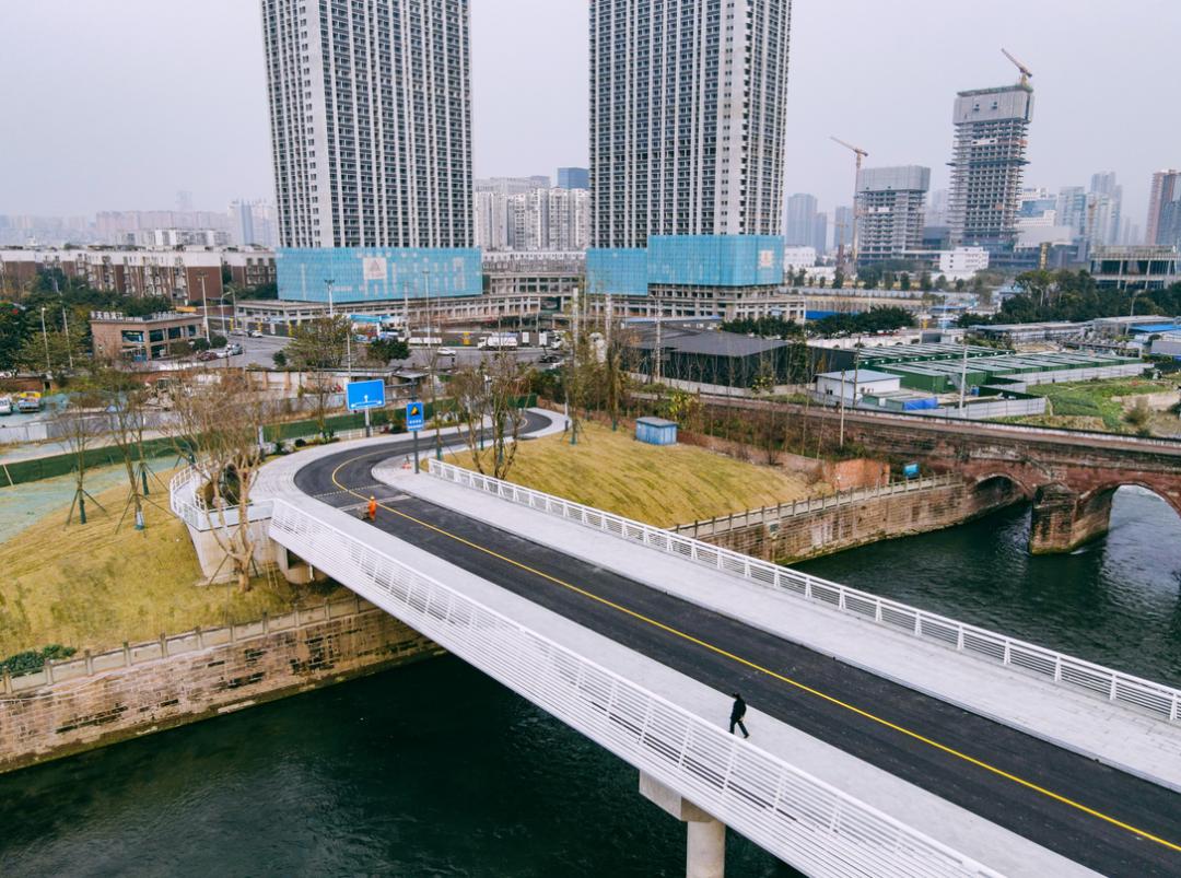 历经14个月的建设,2021年12月31日,跨锦江桥梁正式开通。