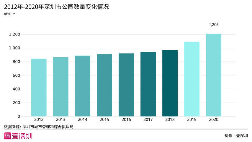 数据显示,截至2020年底,深圳公园数量已达到1206个,公园绿地面积达到20077公顷;2019年深圳市公园绿地服务半径覆盖的居住用地面积达到20671.11公顷,公园绿地服务半径覆盖率90.87%,绿道长度2462公里,比上年0.57%,绿道覆盖密度居全省第一,形成串联深圳的绿色“骨架”。风景如画的漫步空间、精彩纷呈的城市文化在其中生长,带给市民举目可见的生活之美和触手可及的生态福利。