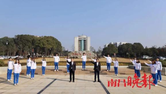 华东交通大学师生在学校中心广场、