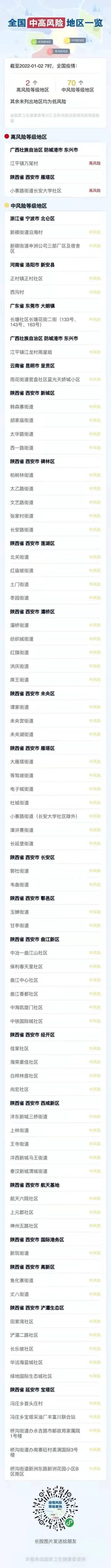 关注全国中高风险地区的变化,尽量减少跨区域人员流动。截至2022年1月2日7时,全国高风险地区2个,中风险地区70个,详见附图。