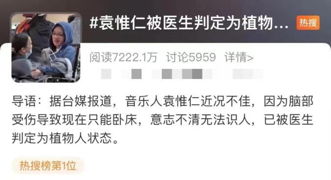 据报道,当时袁惟仁在家中因为没力气站稳,摔倒撞到头导致昏迷。经过长时间的抢救,袁惟仁的情况平稳下来,但医生表示不能说完全度过危险期,仍需要接受观察。