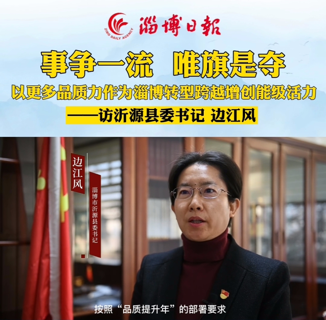 1月1日新年伊始,《淄博日报》2版刊发《事争一流 唯旗是夺 以更多品质力作为淄博转型跨越增创能级活力——访中共沂源县委书记边江风》,淄博日报视频号播发同题专访视频。