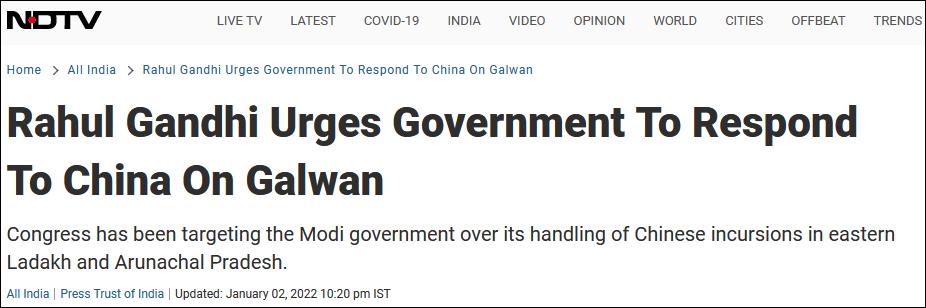 印度新德里电视台声称,拉胡尔·甘地的这一言论,是将中方的举动视为“入侵”,并敦促莫迪政府对此作出反应和处理。然而,中国外交部发言人早已明确指出,加勒万河谷地区主权历来属于中国。