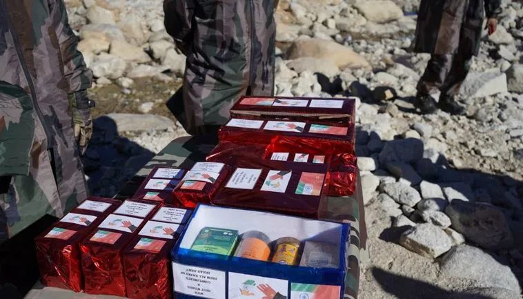 2022年1月1日,中印军队在边境互致问候、交换糖果。图自印媒