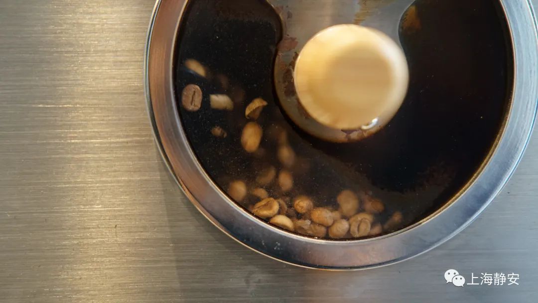 之后,烘焙机进入回温阶段,机器内温度重新上升。升温2分30秒~2分45秒时,咖啡豆基本转黄,从绿色豆子变为黄色豆子。