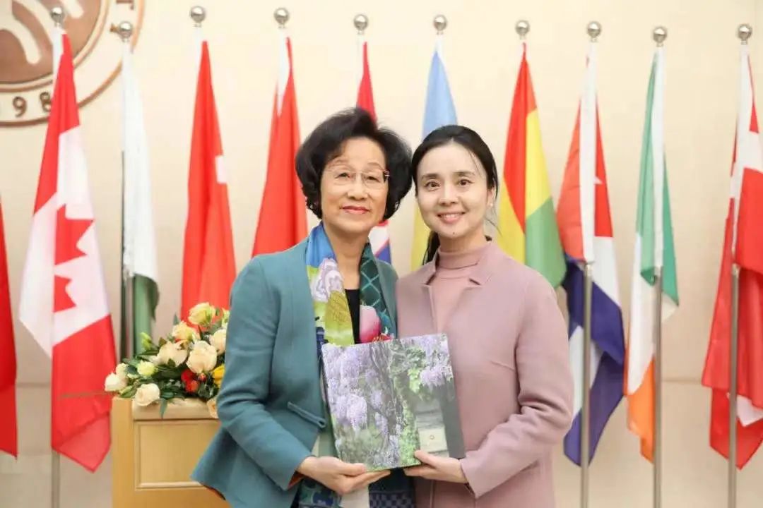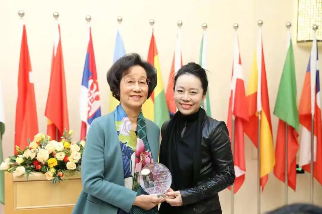 袁明教授讲话后,燕京学堂院长助理郭菲、左婧分别为她送上了学堂特别制作的感谢牌和纪念画册。