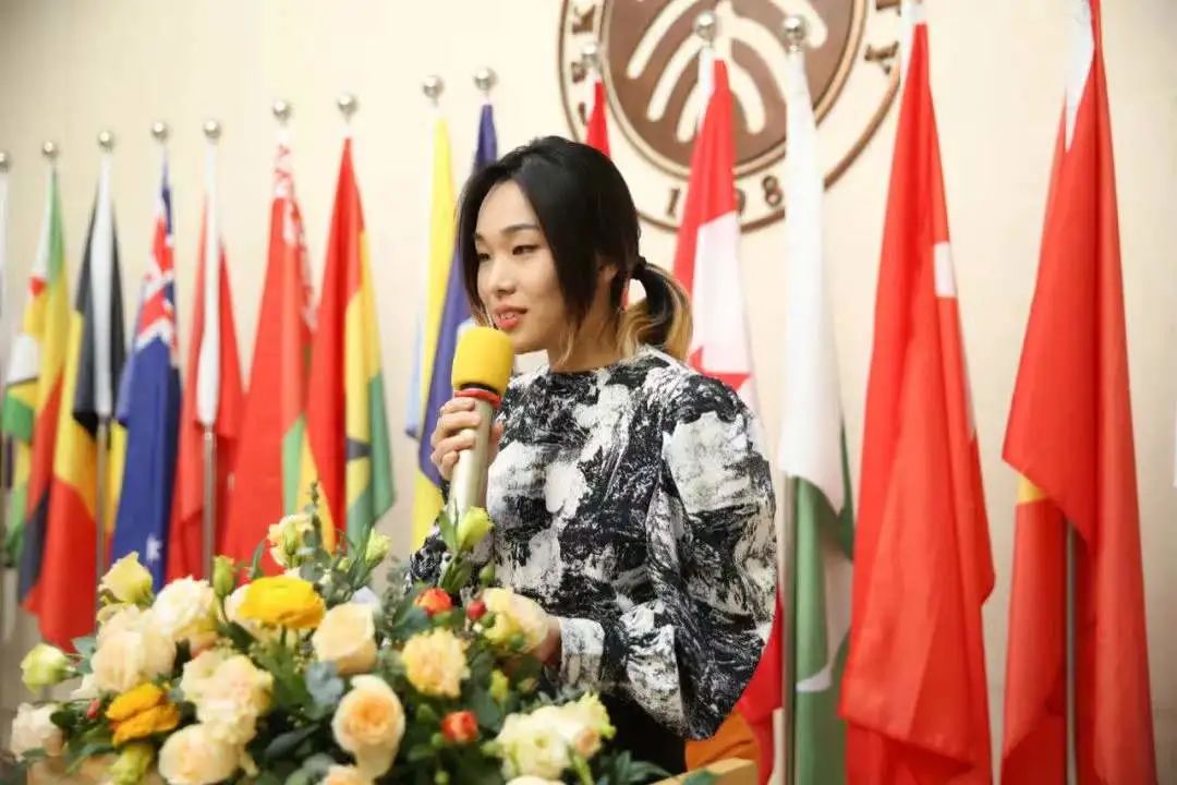 冯玮欣作为在校生代表,向袁明教授表达了谢意与敬意。她回忆了在燕京学堂与袁明教授相识和相处的过程,感谢袁老师对她的学业和“我,門”跨学科文化展的支持与鼓励。冯玮欣以“阳光”来比喻袁明教授对同学们的影响,并代表同学们表达了对袁老师的感谢,以及对董强院长的欢迎。