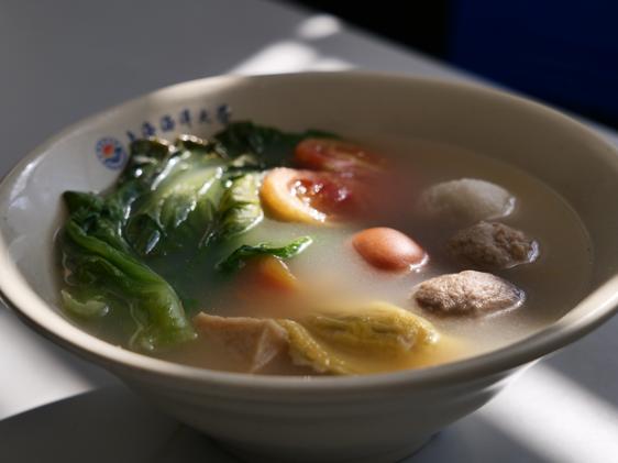 瞧!这满满一大碗螺狮粉让人直呼过瘾!海大食堂的螺蛳粉酸爽得很,脆脆的腐竹皮吸满汤汁,清爽的黑木耳和嫩嫩的白豆腐,让这碗螺蛳粉口感层次极为丰富。