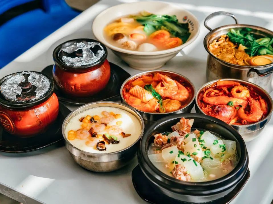 橙红的火舌舔舐着银色的锅底,咕嘟咕嘟是汤汁叫嚣的声音。三鲜砂锅粉丝汤里晶莹剔透的虾仁和雪白的鱼丸让人口齿留香;牛肉砂锅粉丝汤里金灿灿的煎蛋更是让人食欲大开!