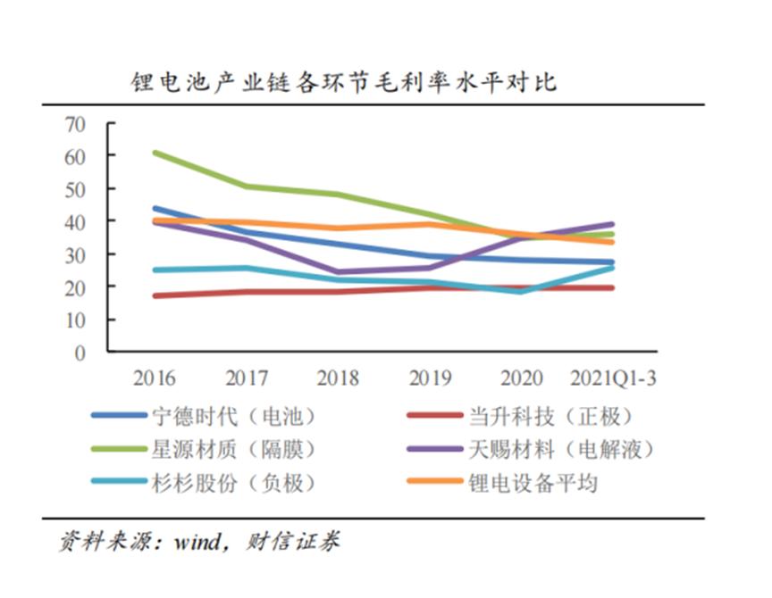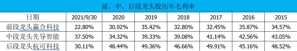 我们通过对三个环节的龙头股毛利率对比分析证实了推测的情况。